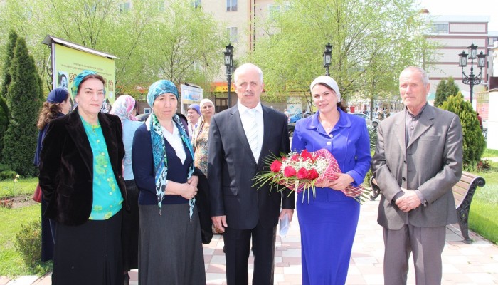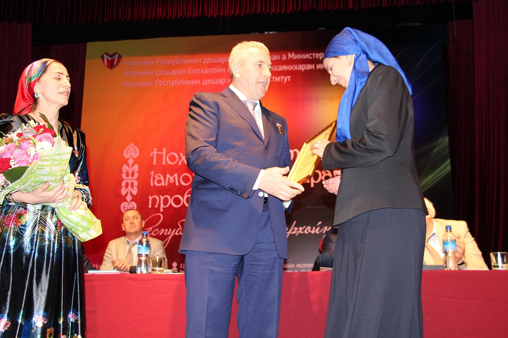 Учитель чеченского языка М.Кудаева.Награждение за II-е место в республиканском конкурсе "Лучший