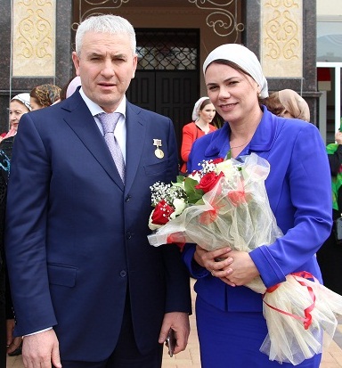 Кудаева Майдат Вахитовна на церемонии награждения призеров и победителей республиканского конкурса "Лучший кабинет чеченского языка" . 2015 год.
