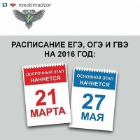Утверждено расписание ЕГЭ 2016 Приказом Минобрнауки России, зарегистрированным Минюстом РФ, утверждено расписание проведения единого государственного экзамена (ЕГЭ) в 2016 году. Согласно расписанию, экзамены в этом году пройдут в два этапа: досрочный (с 21 марта по 23 апреля) и основной (с 27 мая по 30 июня). Обращаем внимание, что в 2016 году проведение ЕГЭ в февральские, июльские и сентябрьские сроки не предусмотрено. Впервые для ЕГЭ по обществознанию, самому массовому предмету по выбору, в 2016 году расписанием предусмотрен отдельный день. Это стало следствием оптимизации организационной схемы проведения экзаменов в пунктах проведения экзаменов (ППЭ). Кроме того, наряду с резервными сроками для проведения ЕГЭ, ОГЭ и ГВЭ по отдельным учебным предметам, предусмотрен дополнительный резервный день для проведения экзаменов по всем предметам. Он пригодится тем участникам, которые по какой-либо причине не смогли участвовать в основной или в резервный день. Например, совпадение двух выбранных предметов в один день или отсутствие по уважительной причине.