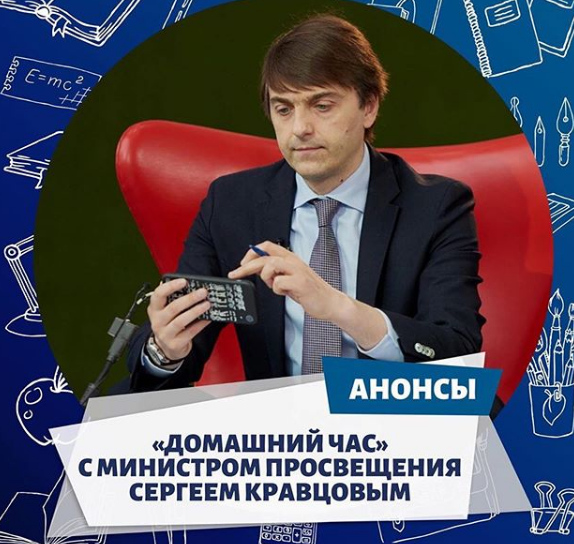 04.04.2020Зрители онлайн-марафона «Домашний час»! Внимание!⠀В 12:00 по московскому времени у каждого из вас будет уникальная возможность пообщаться с Министром просвещения Сергеем Кравцовым.⠀