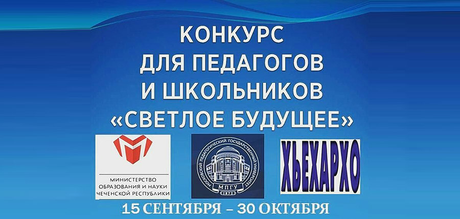 Министерство образования и науки Чеченской Республики, Московский государственный педагогический университет и республиканская газета «Хьехархо» объявляют о начале нового и масштабного конкурса среди педагогов и школьников «Светлое будущее». Наш конкурс направлен на выявление и поощрение лучших учителей и учеников республики, на стимулирование вашей творческой активности, привлечение внимания общественности к проблемам системы образования.