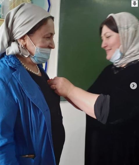 Учитель истории и обществознания МБОУ "СОШ 2 с. Алхан- Кала Грозненского муниципального района ЧР" Марха Басаева награждена памятной медалью ЦК КПРФ к 75- летию Великой Победы.
