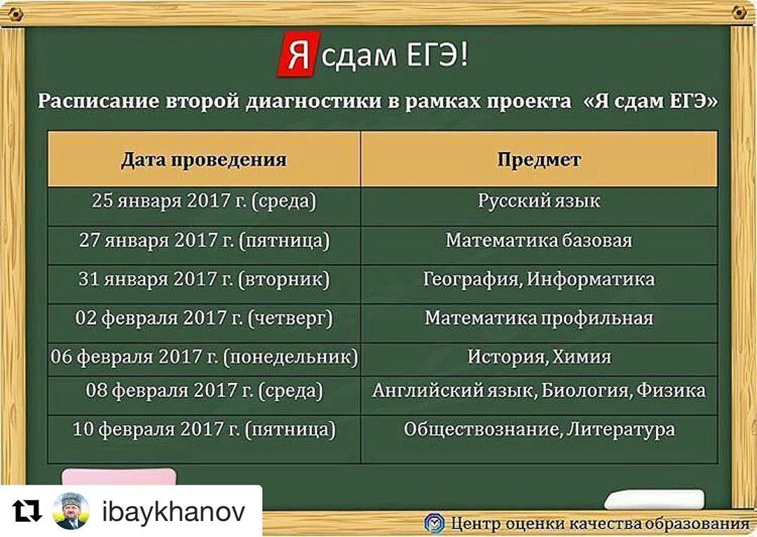 18.01.2017С 25 января по 10 февраля текущего года в общеобразовательных организациях Чеченской Республики будет проходить вторая диагностика в рамках проекта «Я сдам ЕГЭ!».