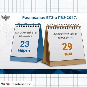 ⚡️Утверждено расписание ЕГЭ2017: досрочный период - с 23 марта по 14 апреля, основной - с 29 мая по 1 июля.