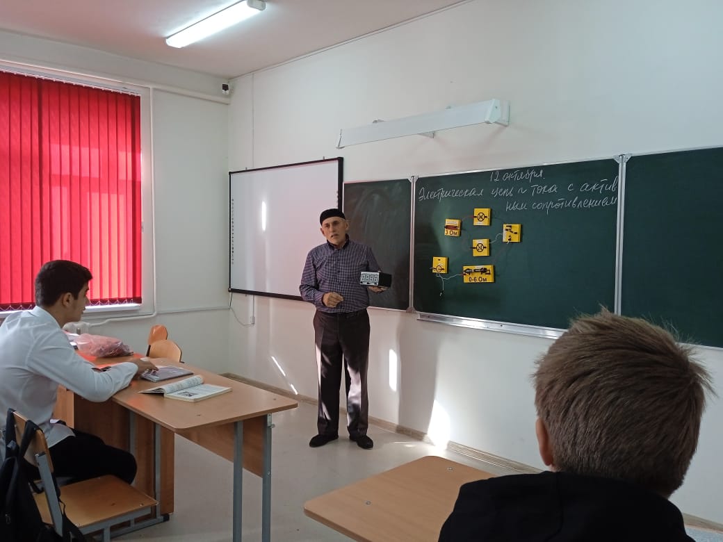 12.10.202212 октября 2022 года в целях реализации Федерального проекта «Точка роста», действующего в рамках национального проекта «Образование» на базе МБОУ «СОШ №2 с. Алхан-Кала» - под руководством учителя физики Мавсарова В.С. с обучающимися 11-х классов провели по физике урок «Электрическая цепь с активным сопротивлением».