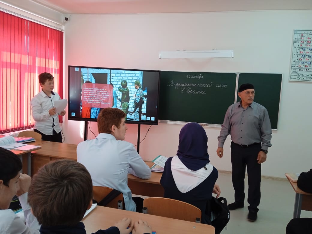 15.10.202215 октября 2022 года в МБОУ «СОШ №2 с. Алхан-Кала» Мавсаров Ваха Сайд-Магомедович, руководитель ОБЖ провел патриотическое мероприятие на тему: «Террористический акт в Беслане» с учащимися 9-10х классов.