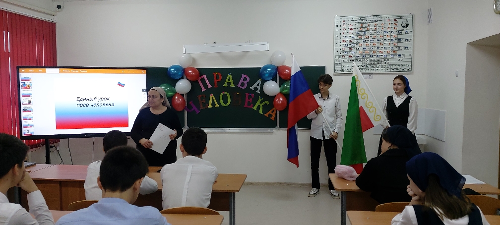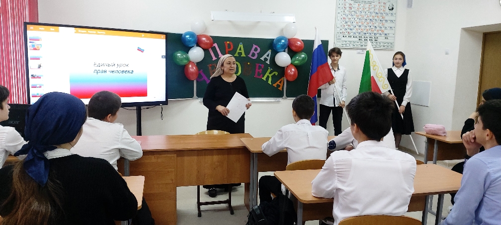 05.12.20225 декабря 2022 года в МБОУ «СОШ № 2 с. Алхан-Кала» в рамках празднования Международного дня прав человека учителем истории и обществознания Басаевой М.И. проведен Всероссийский единый урок «Права человека» с обучающимися 8 классов.