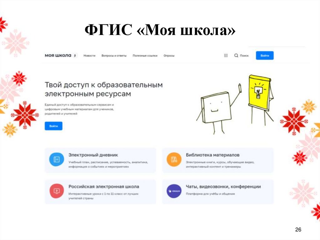 ФГИС «Моя школа» — это единая платформа для школьников, их родителей и учителей. Она объединяет электронные дневники и журналы, библиотеку различных учебных материалов и платформу для учебы и общения. Авторизация на платформе происходит через Госуслуги.
