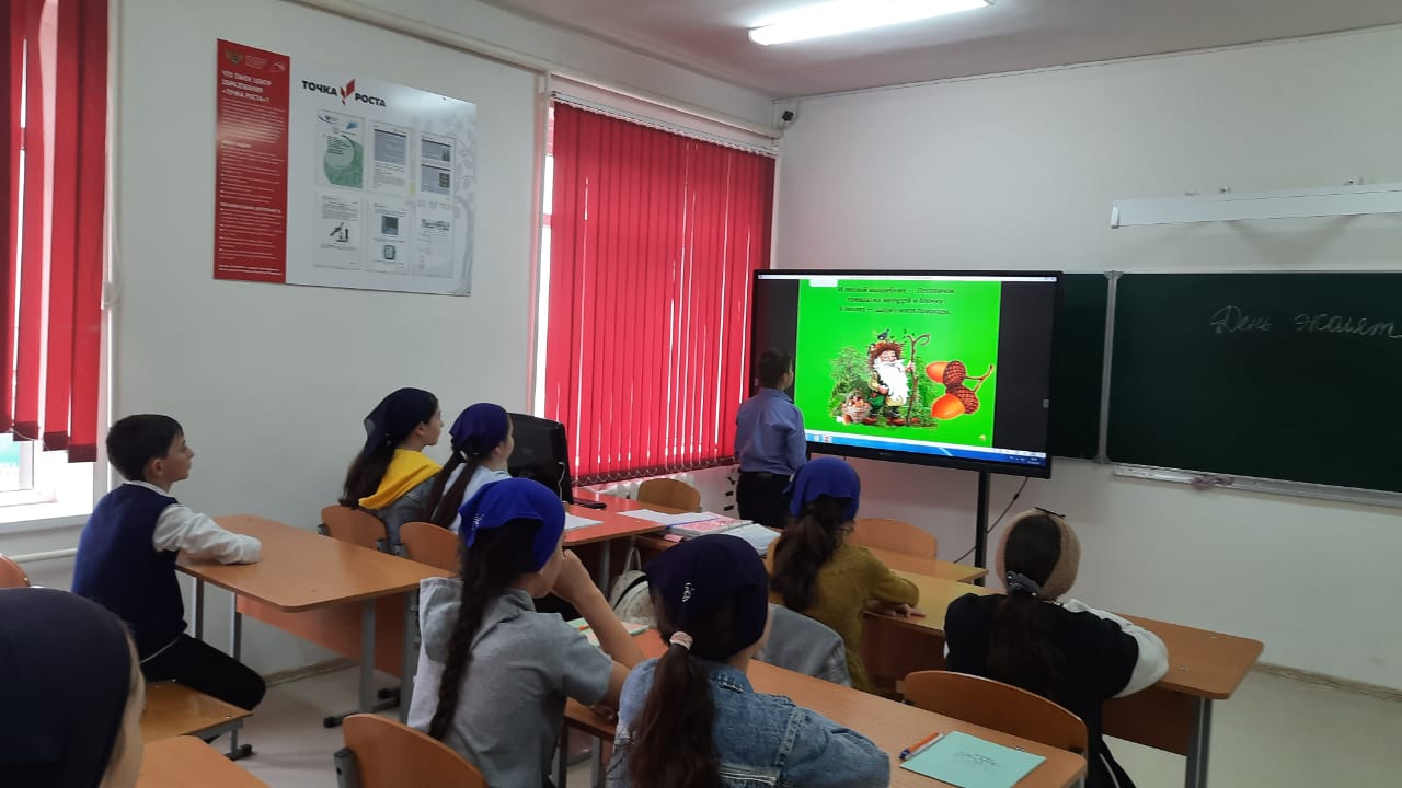 25.04.2023В рамках Всероссийского «Дня Эколят» в МБОУ "СОШ №2 с. Алхан-Кала" с обучающимися 5 класса проведен тематический урок «Познаем Природу с Эколятами» учителем биологии Абдуллаевой Р.С.