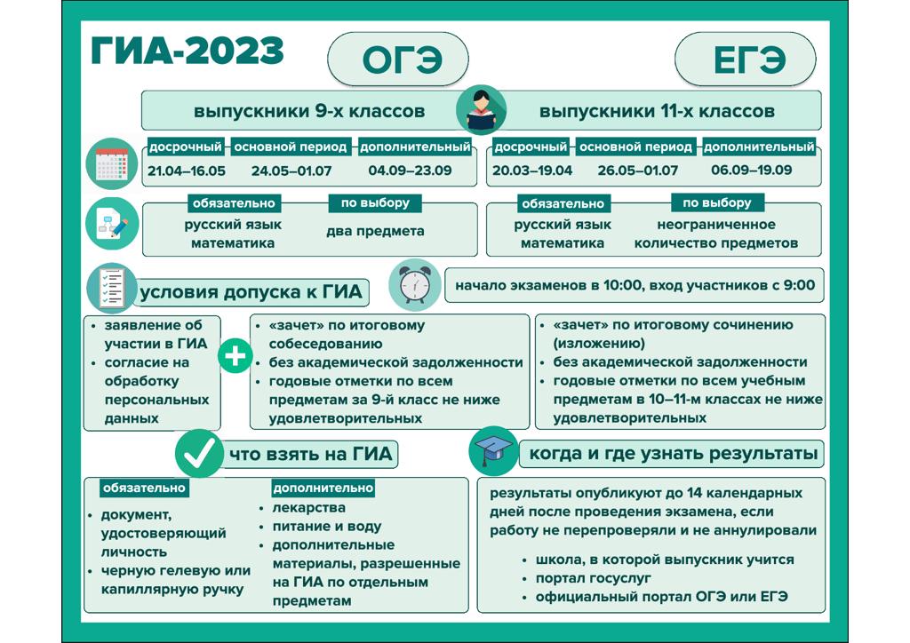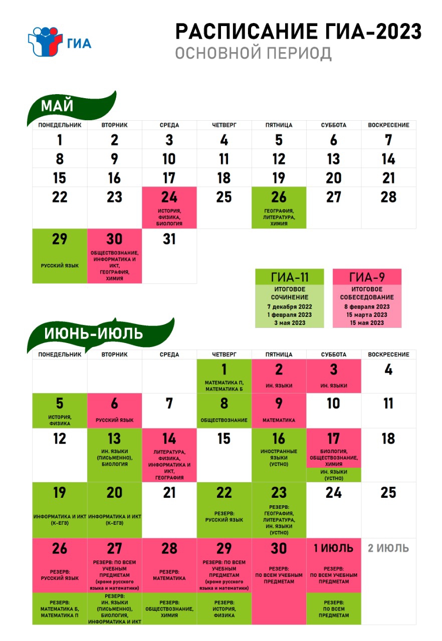 РАСПИСАНИЕ ГИА - 2023 ОСНОВНОЙ ПЕРИОД