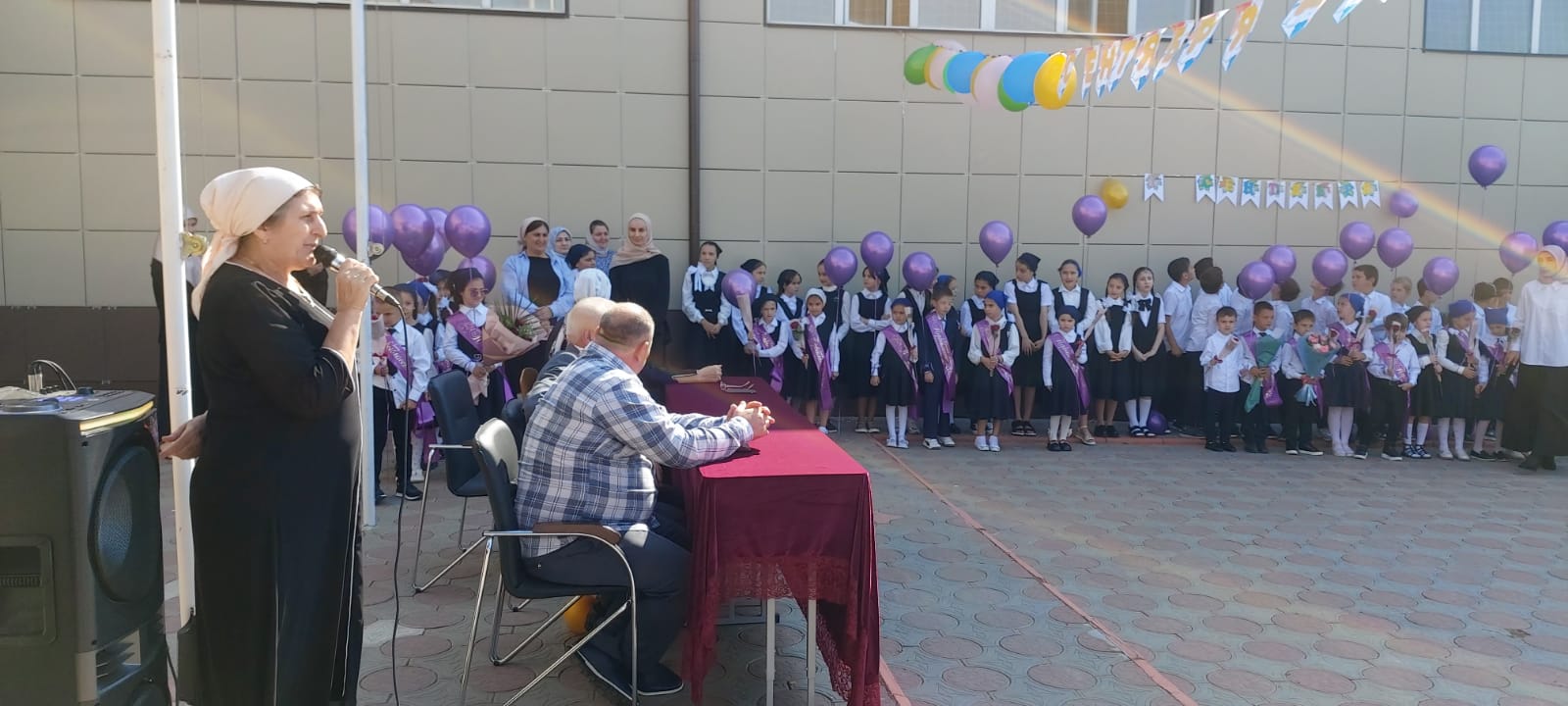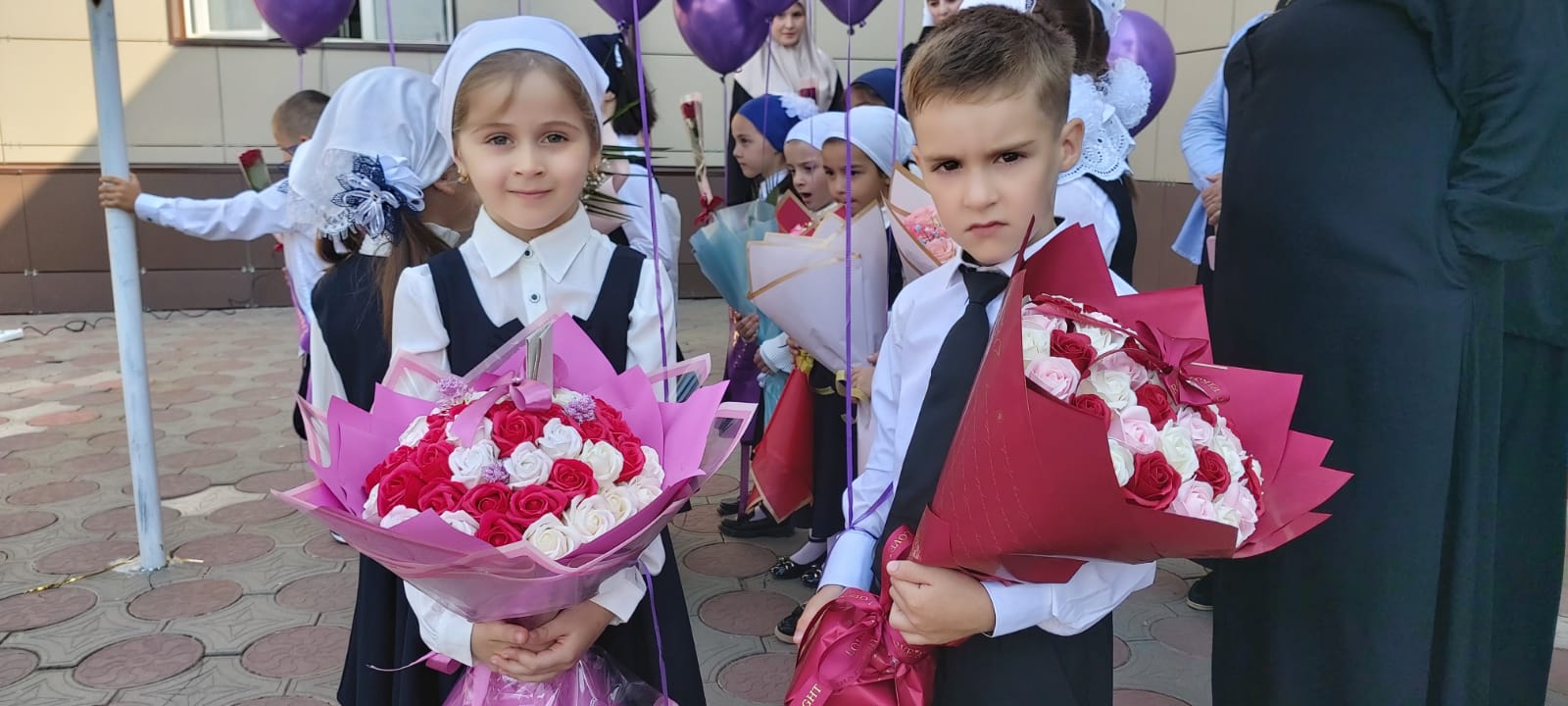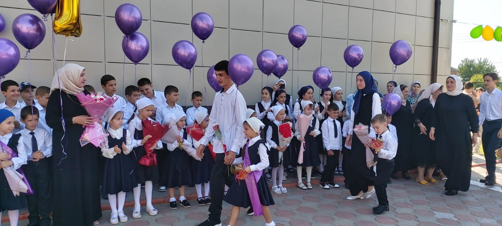По традиции первыми представляют малышей-первоклассников. Директор школы Индербиев Ахмед Лемаевич поздравил учащихся школы с новым учебным годом, отметив, что учение - нелегкий, но радостный и увлекательный труд. Пусть новый учебный год станет для всех ярким и плодотворным, пусть будет наполнен творчеством, интересным и полезным общением, духовно, интеллектуально обогатит и ребят и их педагогов. С ответным словом выступила группа малышей - первоклассников, которые с выражением прочли выученные стихи.