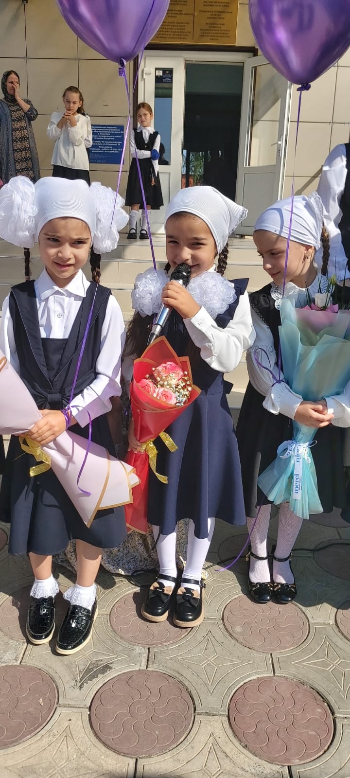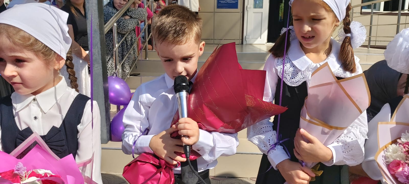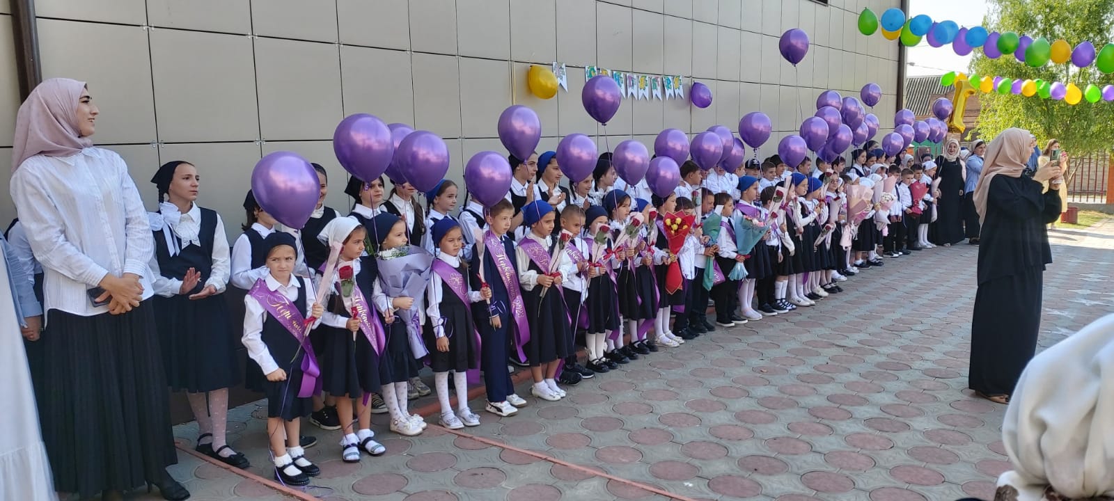 По традиции первыми представляют малышей-первоклассников. Директор школы Индербиев Ахмед Лемаевич поздравил учащихся школы с новым учебным годом, отметив, что учение - нелегкий, но радостный и увлекательный труд. Пусть новый учебный год станет для всех ярким и плодотворным, пусть будет наполнен творчеством, интересным и полезным общением, духовно, интеллектуально обогатит и ребят и их педагогов. С ответным словом выступила группа малышей - первоклассников, которые с выражением прочли выученные стихи.