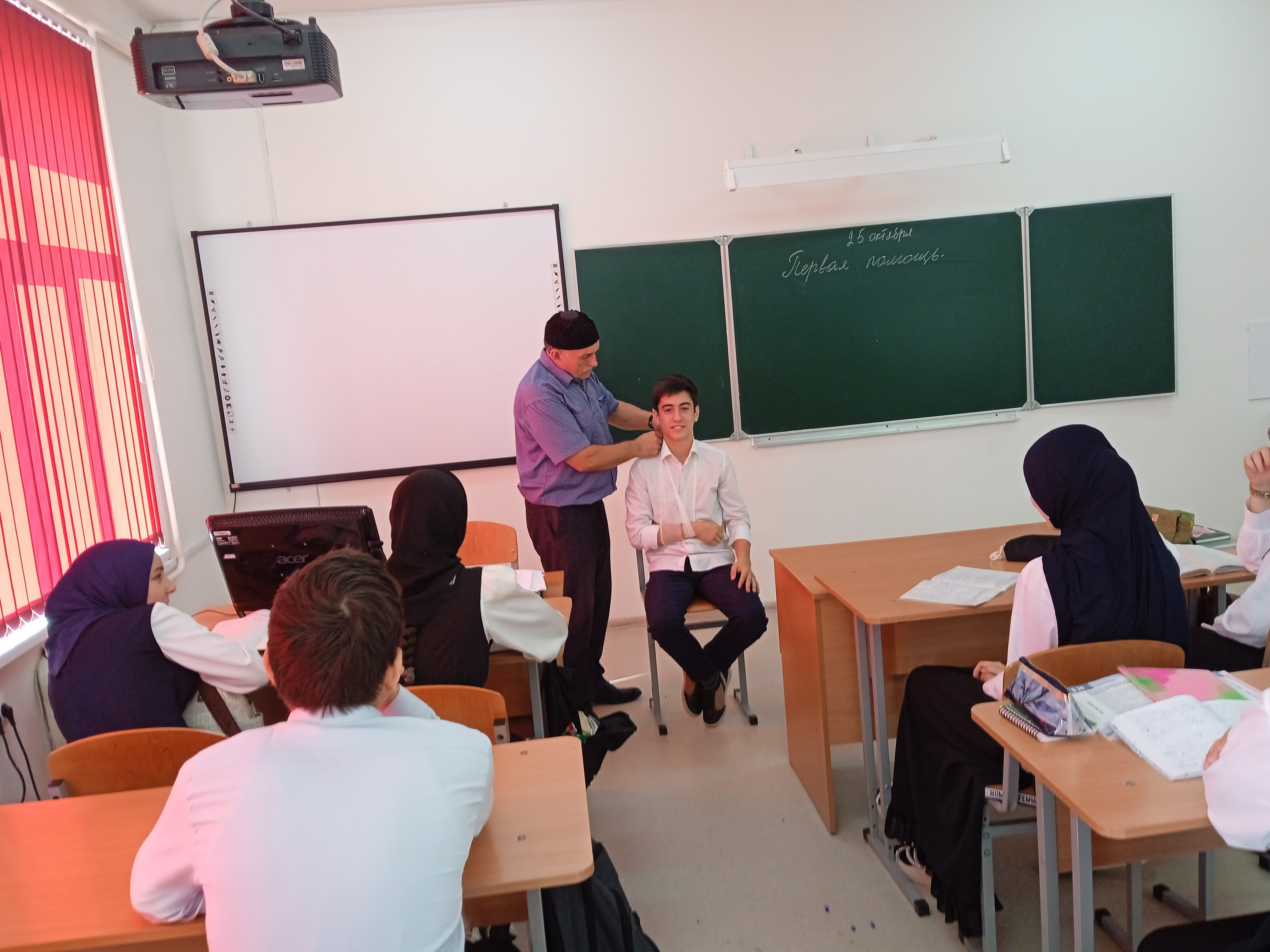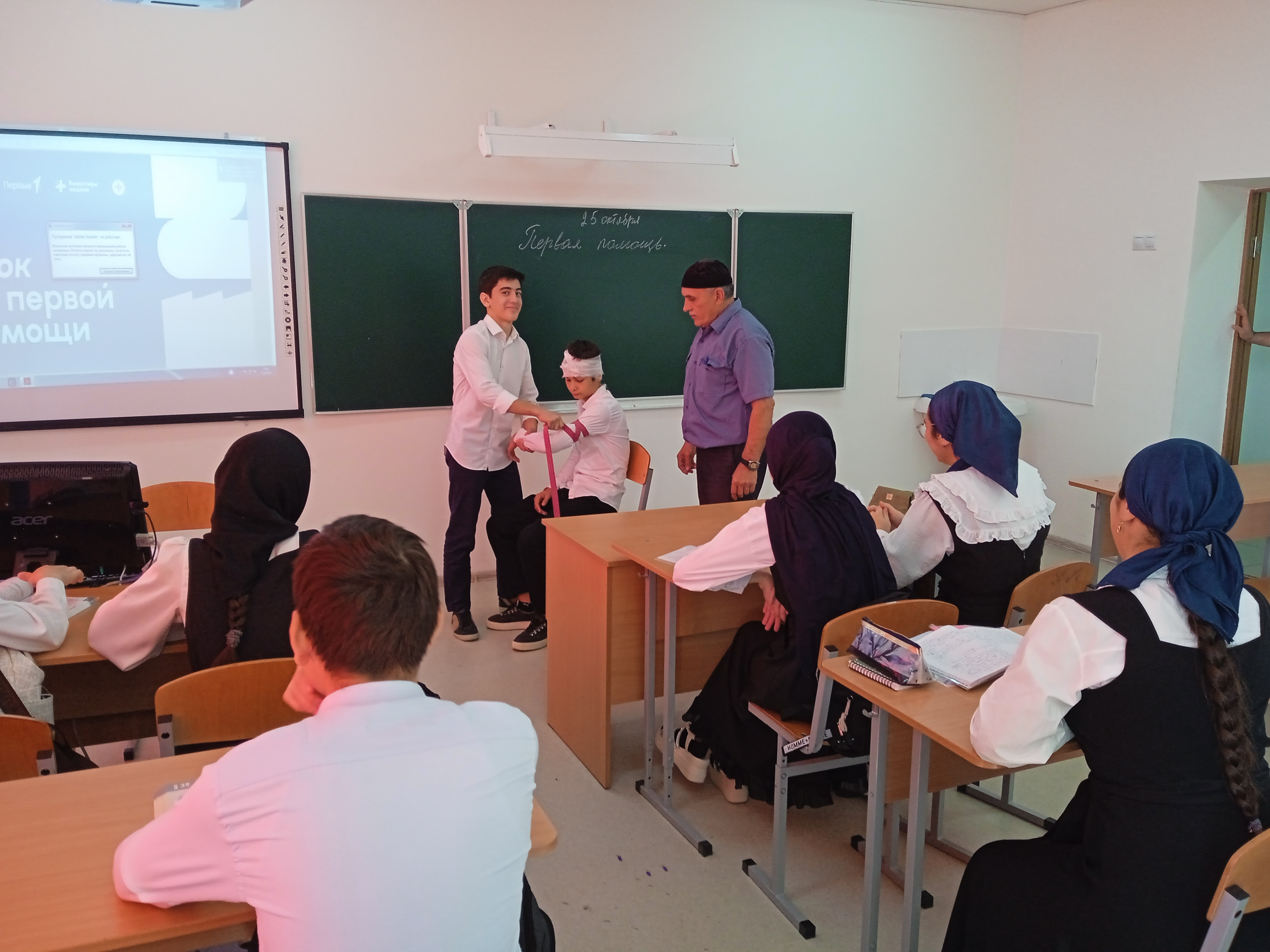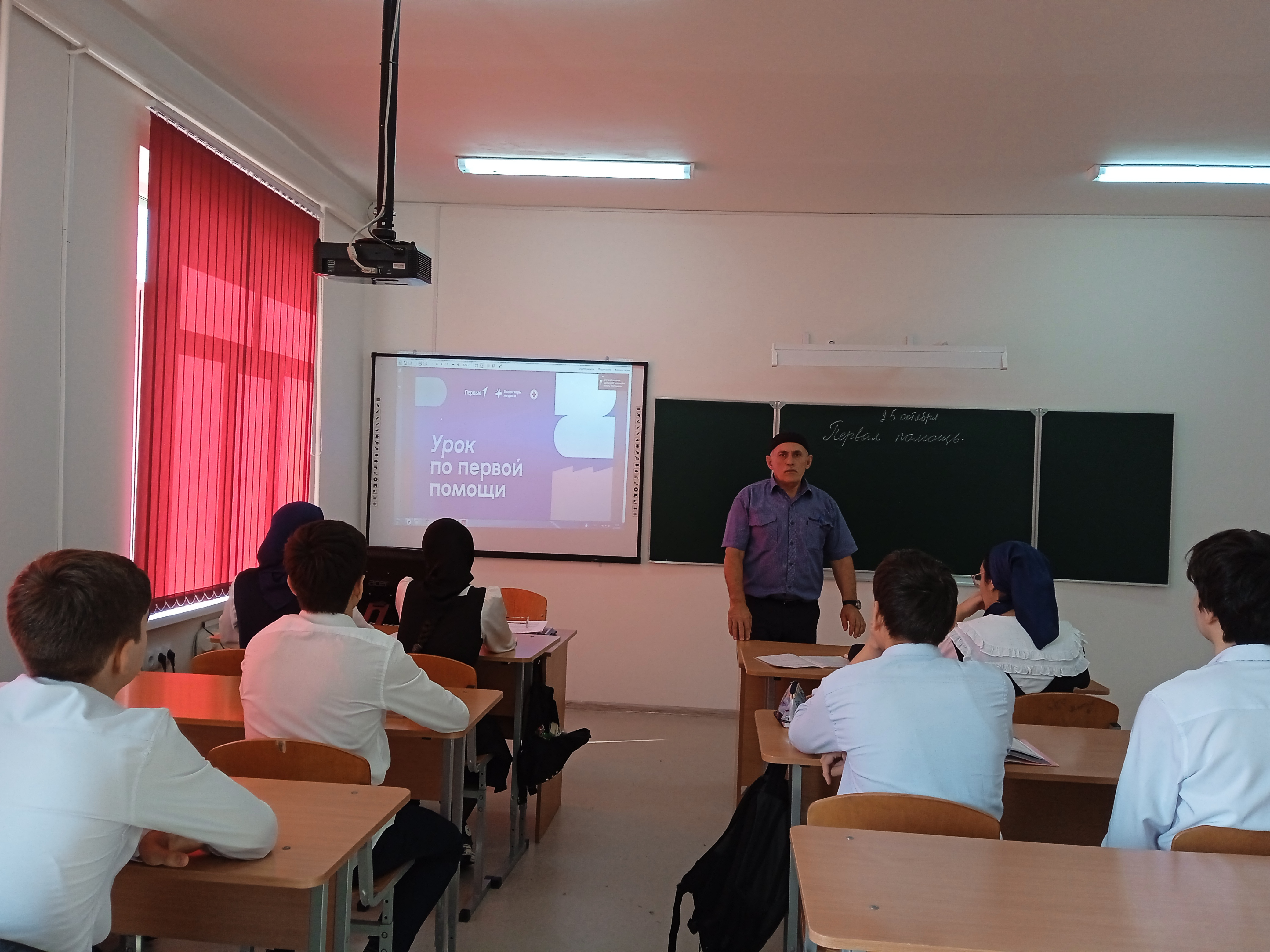 25 октября 2023 года в МБОУ «СОШ №2 с.Алхан-Кала Грозненского муниципального района» под руководством руководителя ОБЖ Мавсарова Вахи Сайд-Магомедовича прошел Урок по первой помощи.