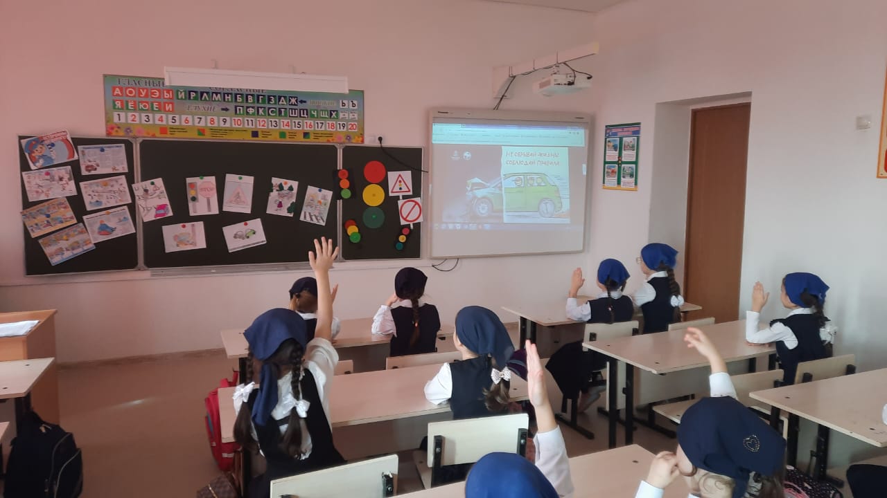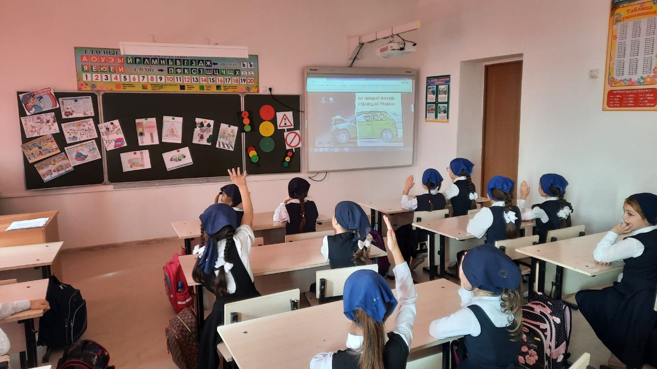 По исполнению пункта 34 межведомственного плана ГИБДД и Министерства образования и науки Чеченской Республики в МБОУ «СОШ №2 с. Алхан-Кала» руководителем ОБЖ Мавсаровым В.С. проведены инструктажи по безопасности дорожного движения. В преддверии осенних каникул были проведены мероприятия по правилам безопасного поведения на дорогах. Каникулы – это время, когда водители транспортных средств и дети-пешеходы должны быть особенно осторожны. Во время каникул большую часть времени дети проводят на улице. И для того, чтобы маленькие пешеходы не попали в неприятную ситуацию, отряд ЮИД напоминает им о правилах безопасного поведения. Профилактические беседы, рейды, мероприятия, ЮИДовцы регулярно организуют в начальных классах. Так, 28 октября классными руководителями Туршиевой Л.Ш., Бапаевой Т.А. с учащимися 2-х классов совместно с членами отряда ЮИД проведена интеллектуально-познавательная игра "Азбука безопасности". В рамках игры, ребята обсудили с учащимися вопросы по профилактике детского дорожно-транспортного травматизма, нарушений правил дорожного движения в осенний период. Напомнили основные правила поведения на дороге, объяснили, как безопасно переходить проезжую часть по пешеходному переходу и напомнили о необходимости использования световозвращающих элементов. Практически все дети похвастались наличием таких аксессуаров на школьных ранцах и одежде, а также пообещали всегда соблюдать правила дорожного движения.