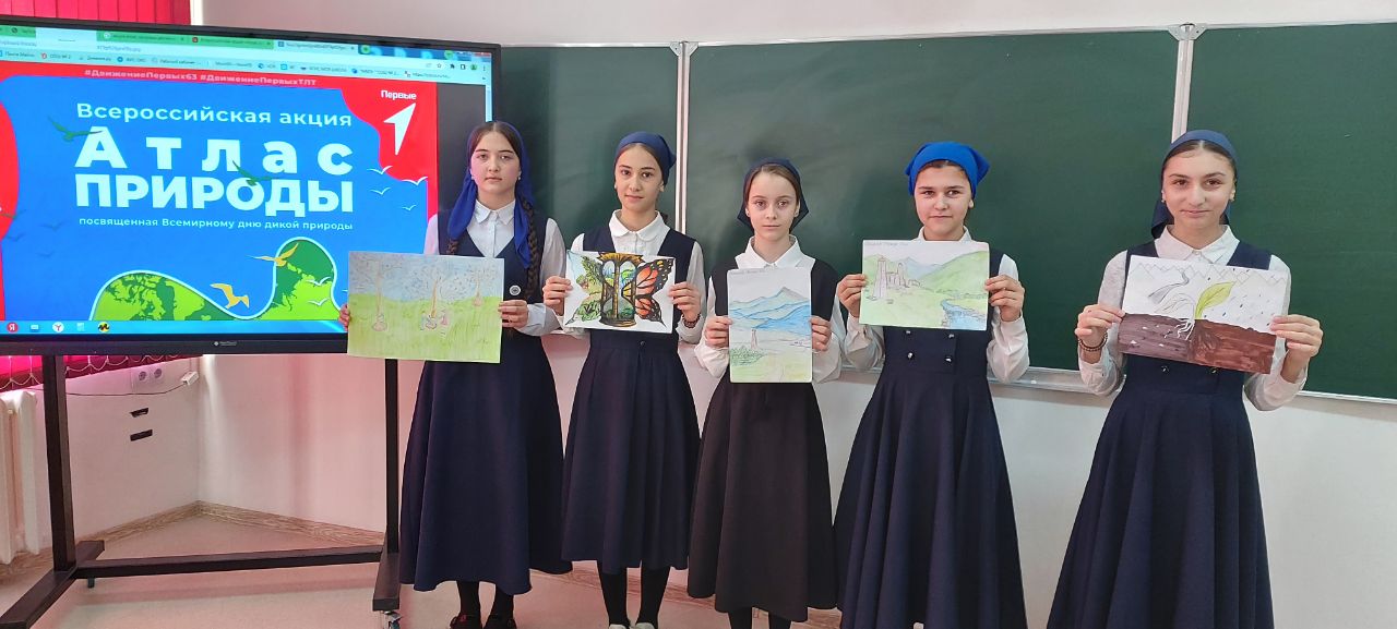 06.03.2024Всероссийская акция «Атлас природы», посвященная Всемирному дню дикой природы Активисты Движения Первых МБОУ "СОШ №2 с. Алхан-Кала" присоединились к Всероссийской акции «Атлас природы».