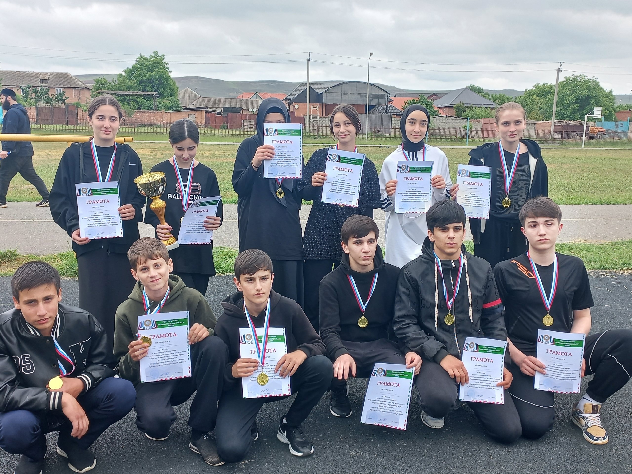 В соответствии с календарным планом физкультурно-спортивных массовых мероприятий 3 мая 2024 года среди обучающихся общеобразовательных учреждений Грозненского муниципального района, на базе МБОУ «СОШ с. Садовое им. А-Х. Кадырова» прошел муниципальный этап Всероссийских спортивных игр школьников «Президентские спортивные игры», в которой участвовали команда обучающихся МБОУ "СОШ №2 с. Алхан-Кала" и заняли достойные призовые места: