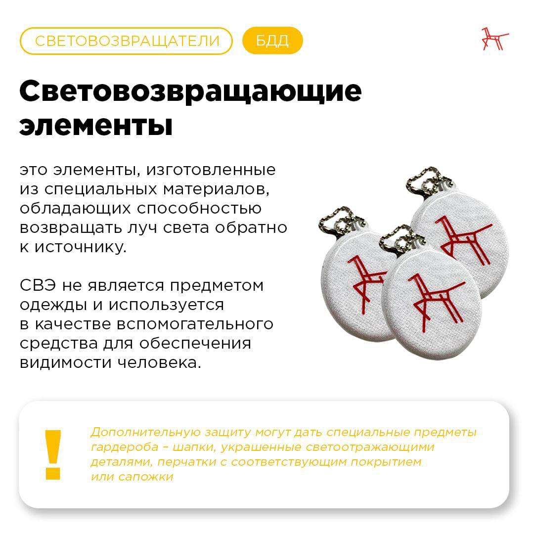 По статистике наезд на пешехода – один из самых распространенных видов дорожно-транспортных происшествий. Основная доля наездов со смертельным исходом приходится на тёмное время суток, когда водитель не в состоянии увидеть вышедших на проезжую часть людей. Световозвращающие элементы повышают видимость пешеходов на неосвещенной дороге и значительно снижают риск возникновения дорожно-транспортных происшествий с их участием.