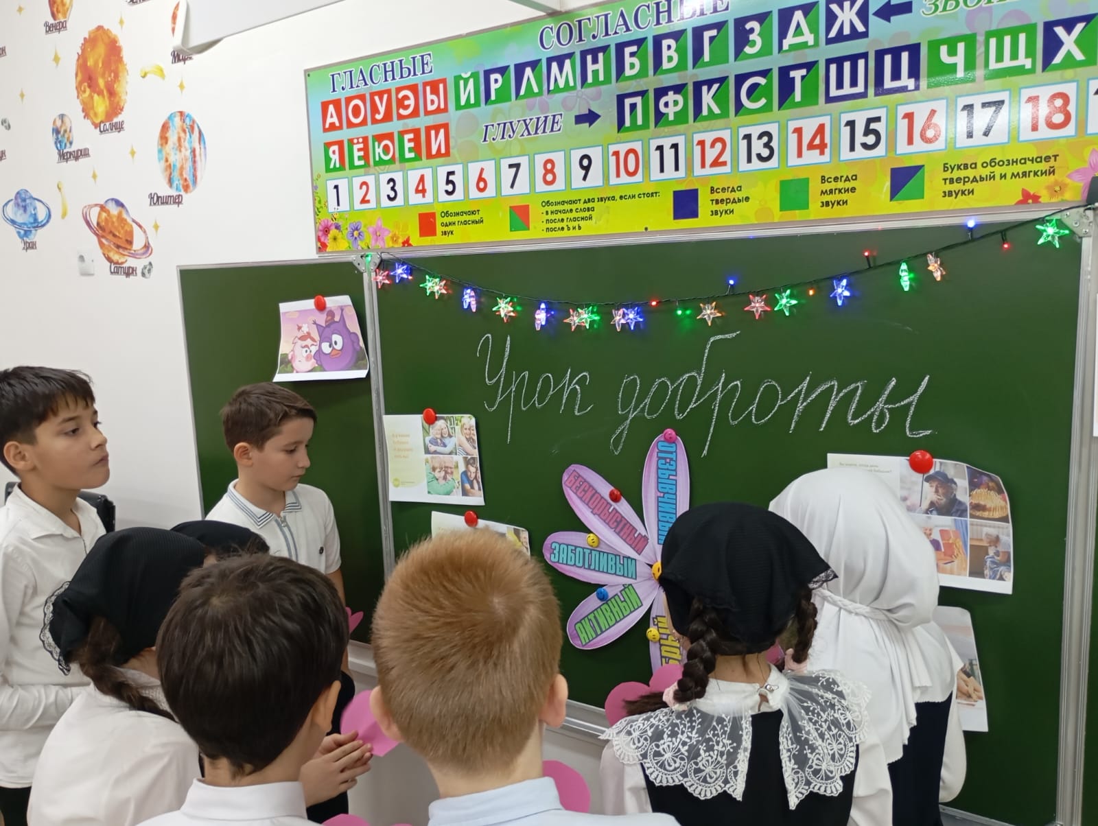 С целью сформирования представления об «особом ребенке» с обучающимися 4 б класса под руководством классного руководителя Ахмадовой З.С. прошел классный час «Доброта спасет мир».