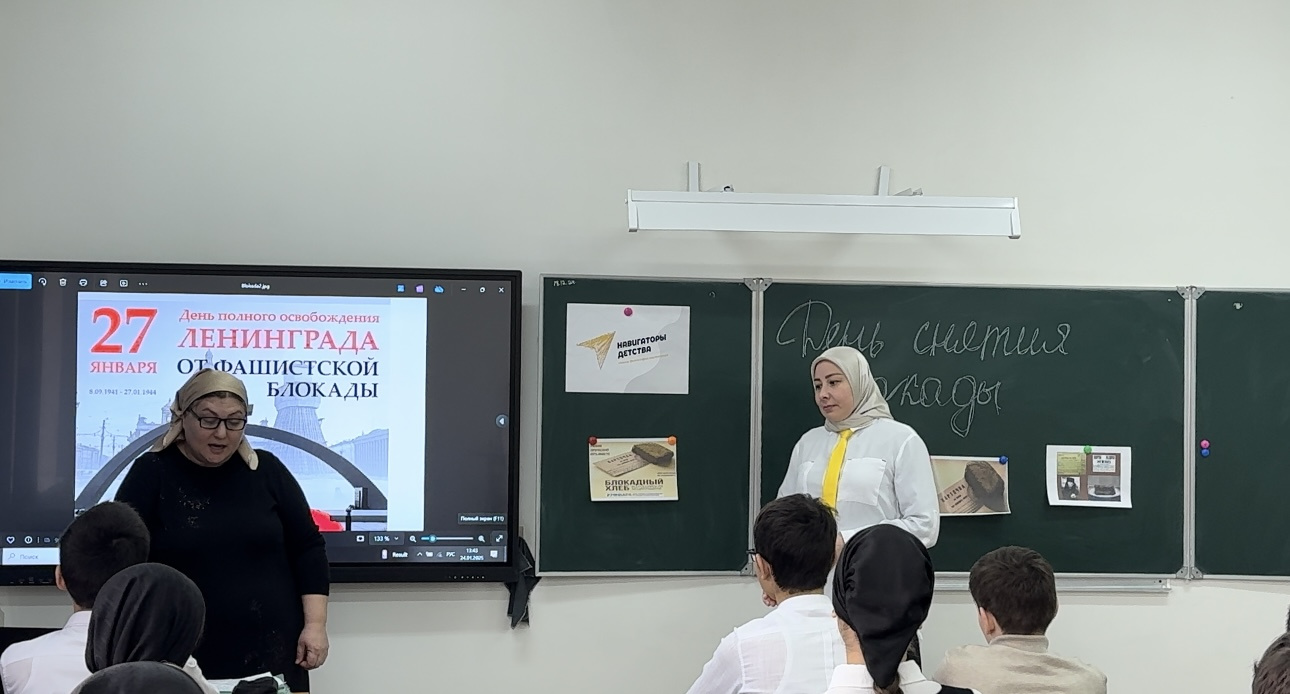 В преддверии этого дня советник директора по воспитанию Юсупова П.Т. совместно с учителем истории Алгириевой Л.Б. провели классный час с использованием интерактивного материала «Искра надежды», чтобы почтить память о тех, кто выстоял в тяжелейшие времена.