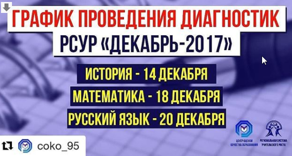 Уважаемые коллеги! Представляем вашему вниманию график проведения диагностических работ в декабре ("Декабрь - 2017") в рамках проекта "Региональная система учительского роста"