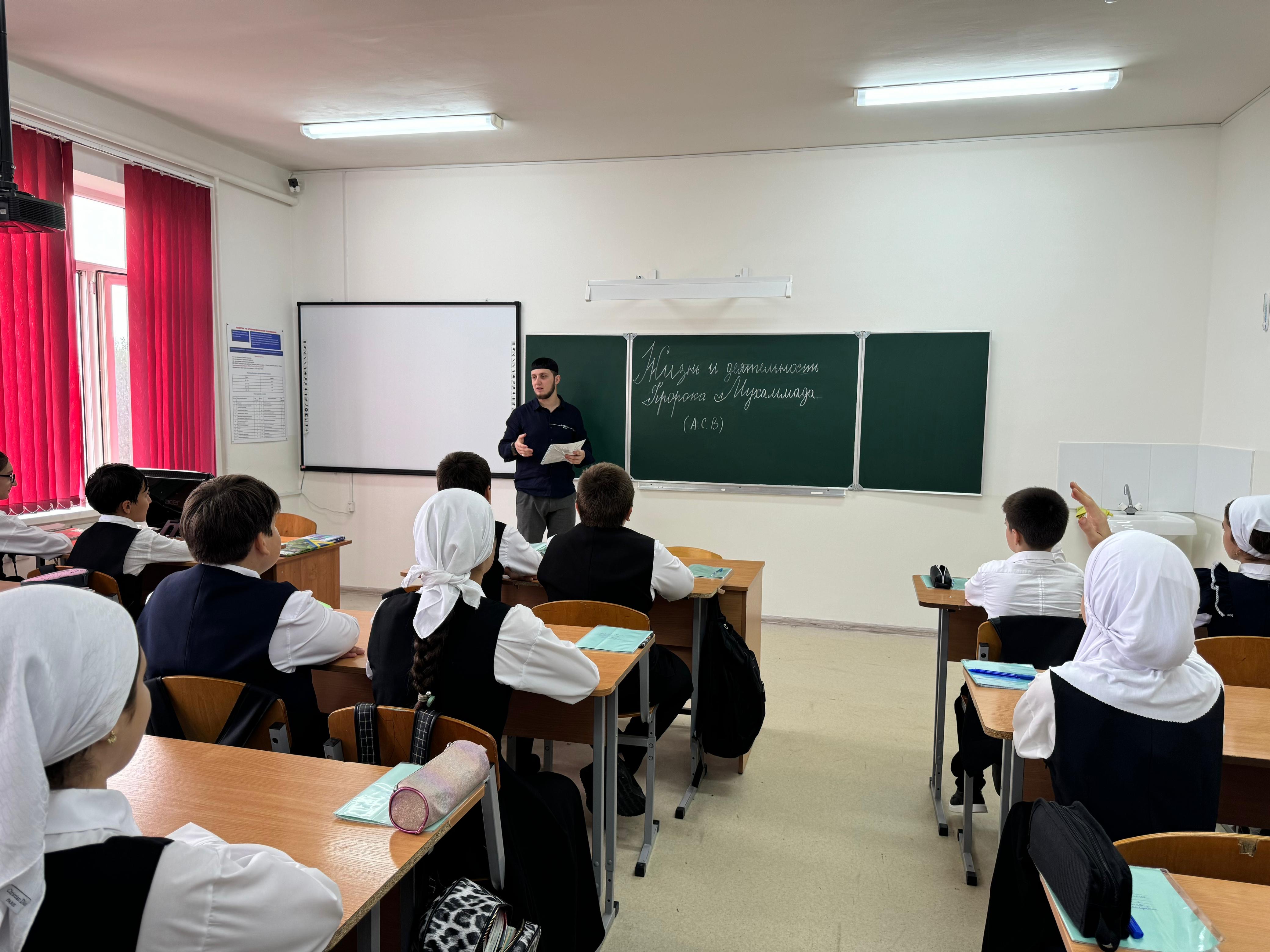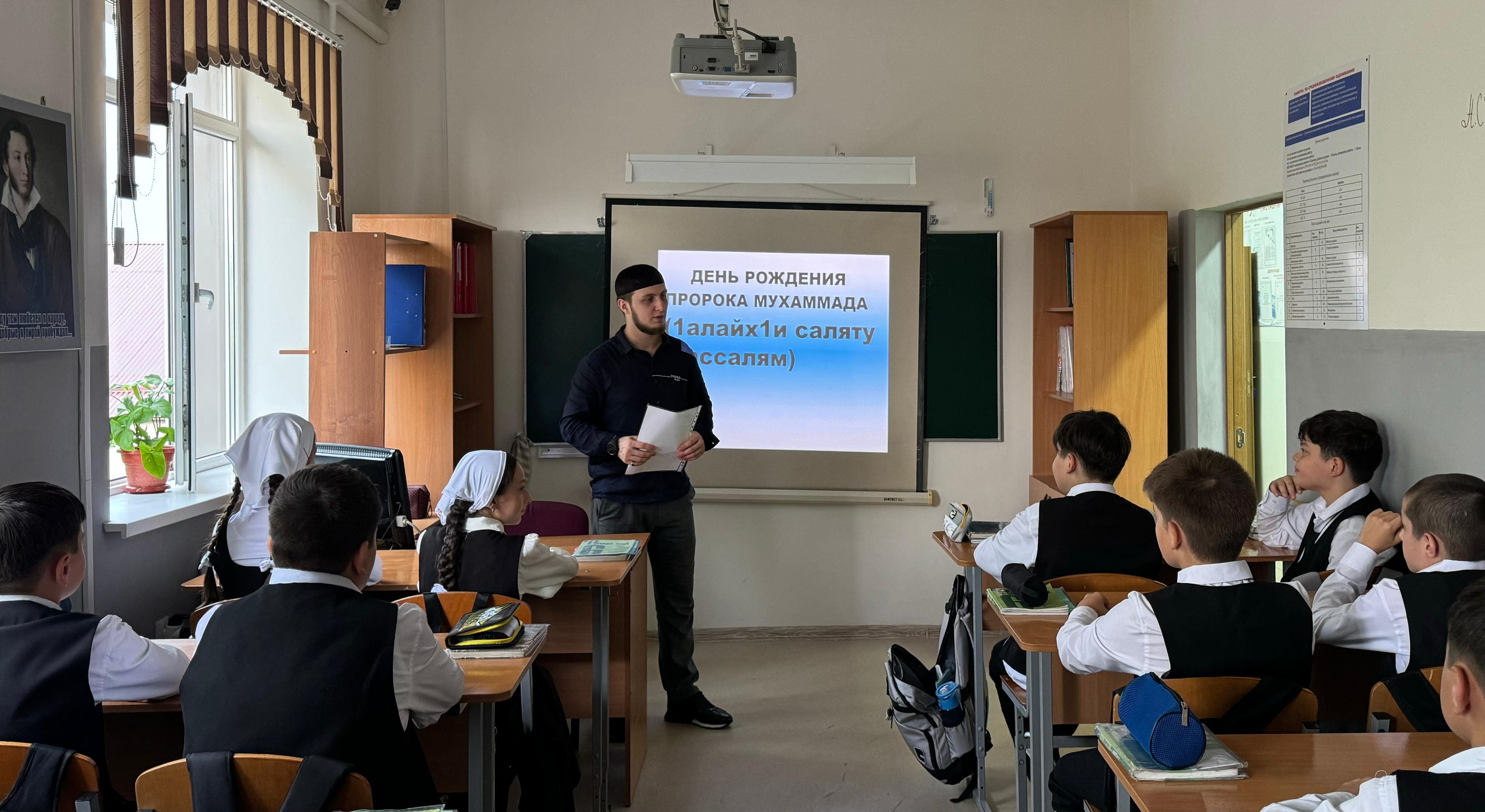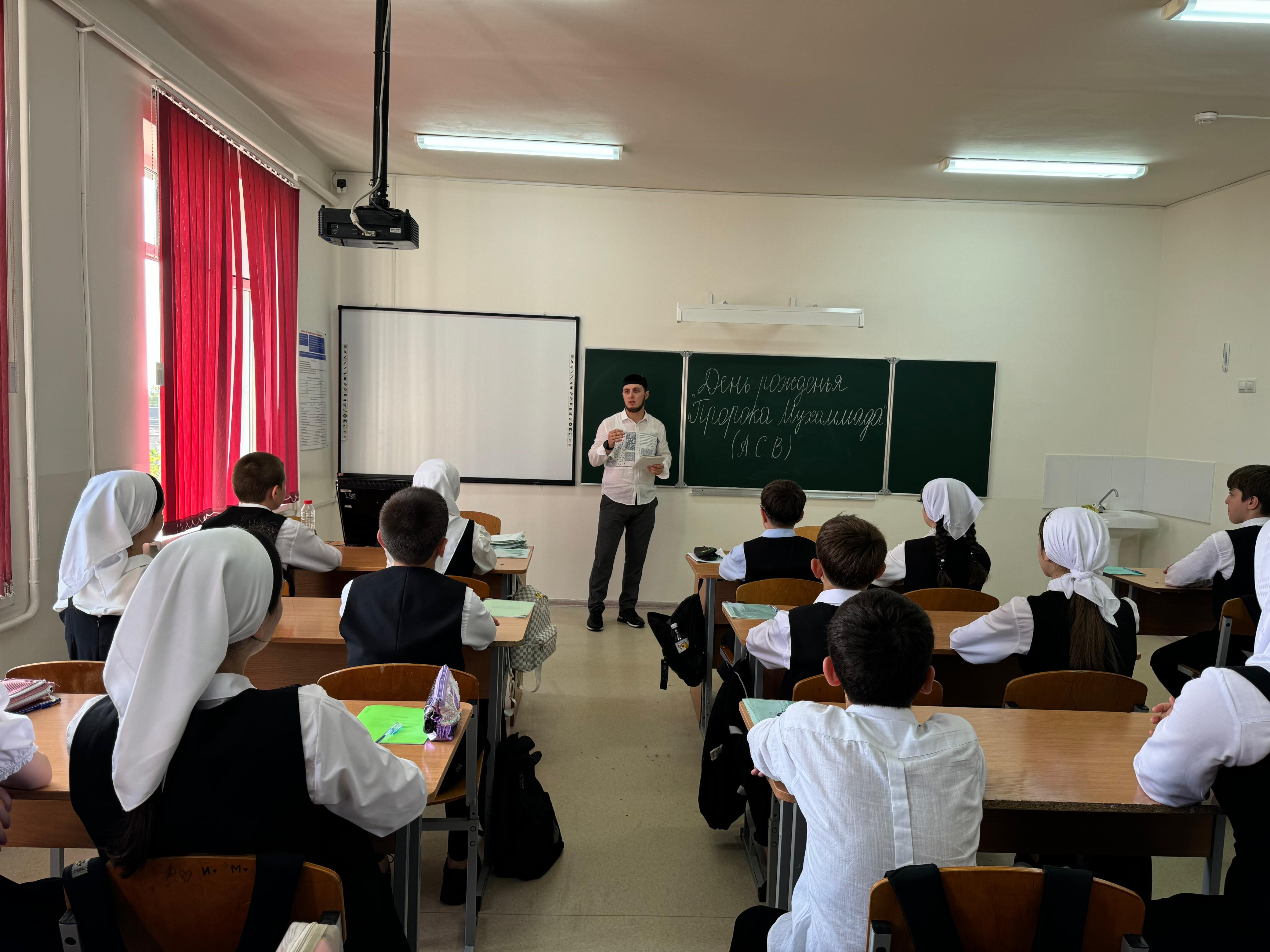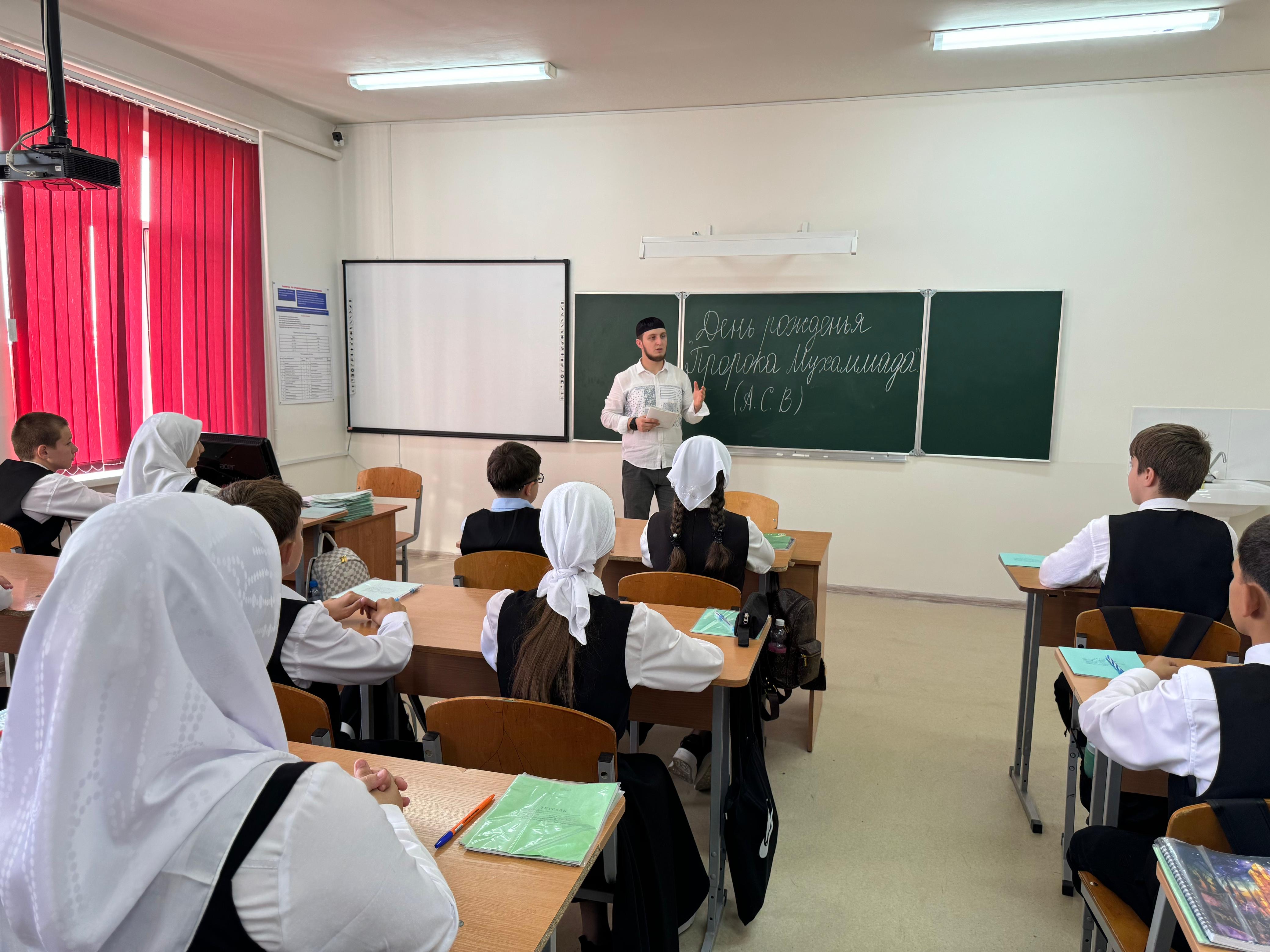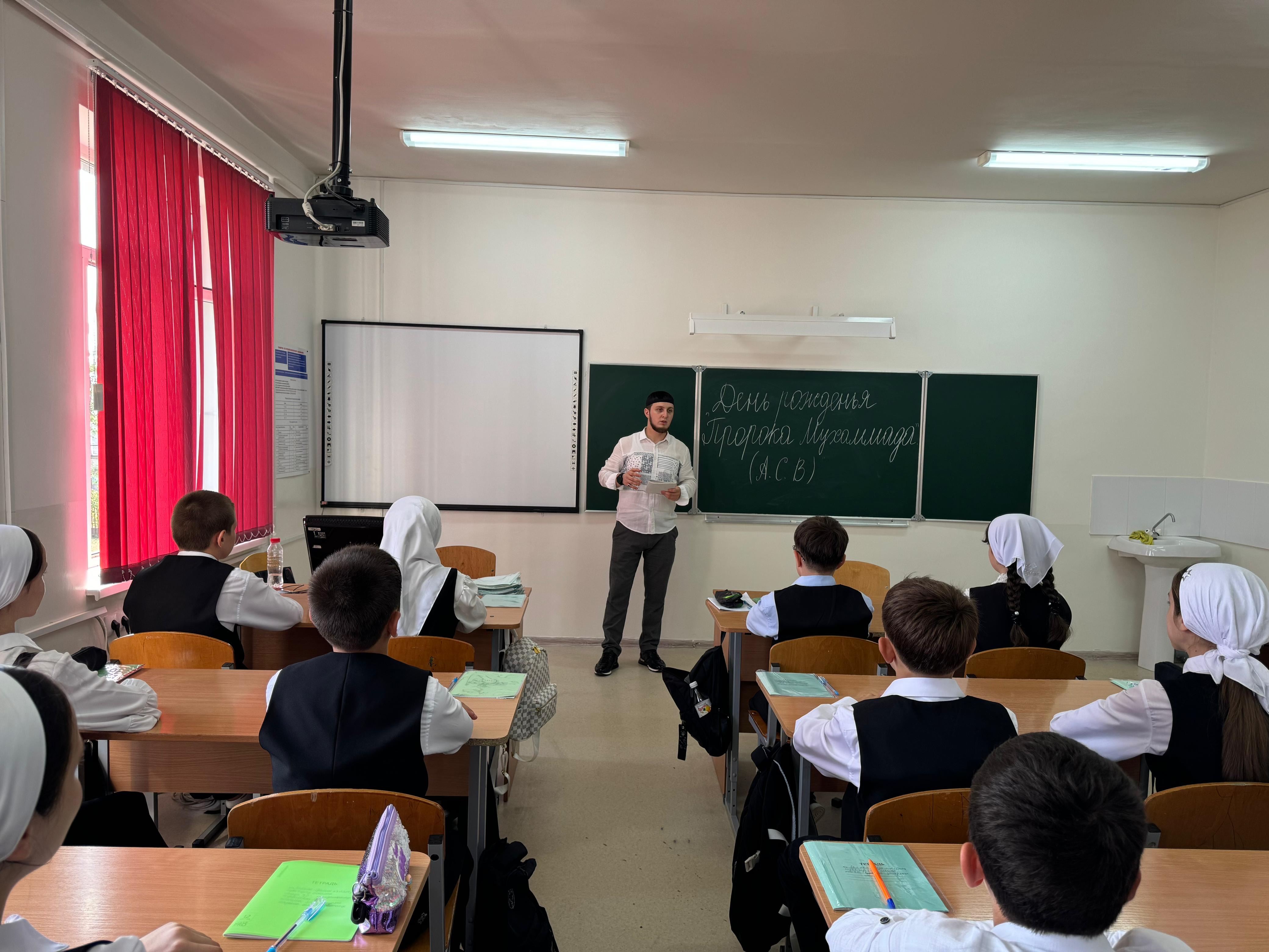 03.09.2025Согласно плану воспитательной работы, с целью обогащения духовного мира обучающихся, воспитания в детях доброты и богобоязненности в МБОУ "СОШ №2 с. Алхан-Кала" педагогом ДНВ Хагиевым А.Р. проведены мероприятия, посвященные дню рождения Пророка Мухаммада (Да благословит его Всевышний и приветствует).