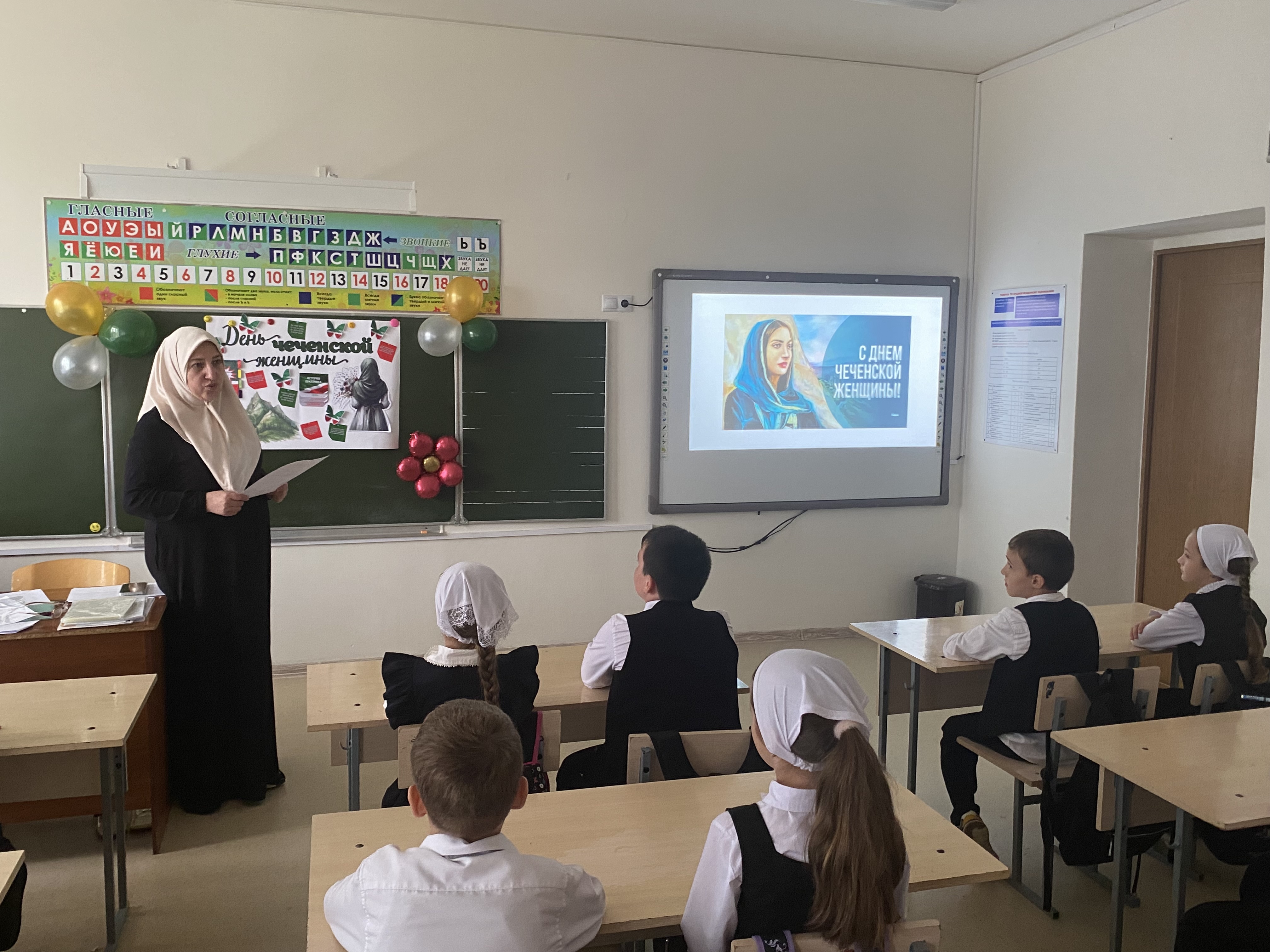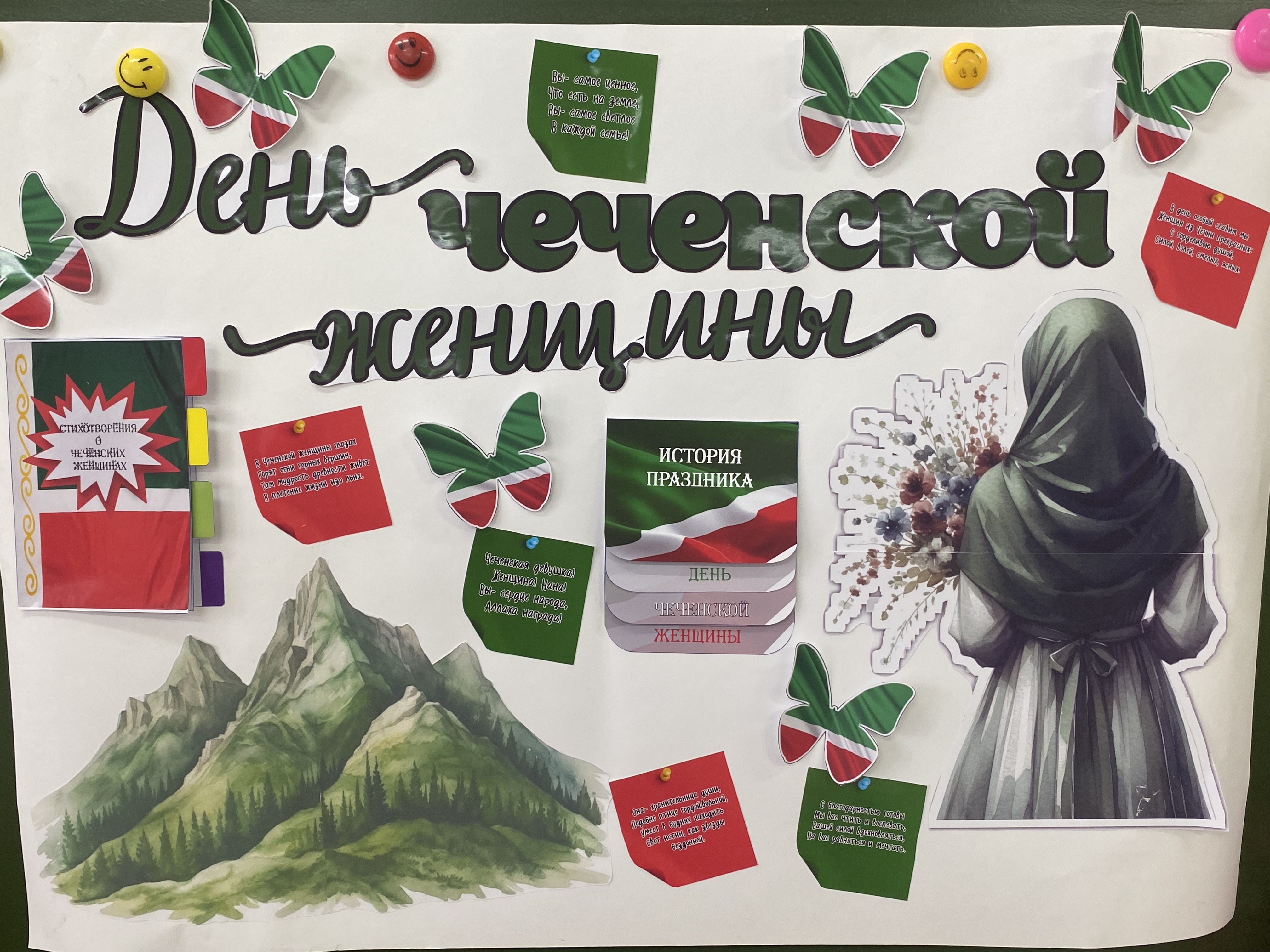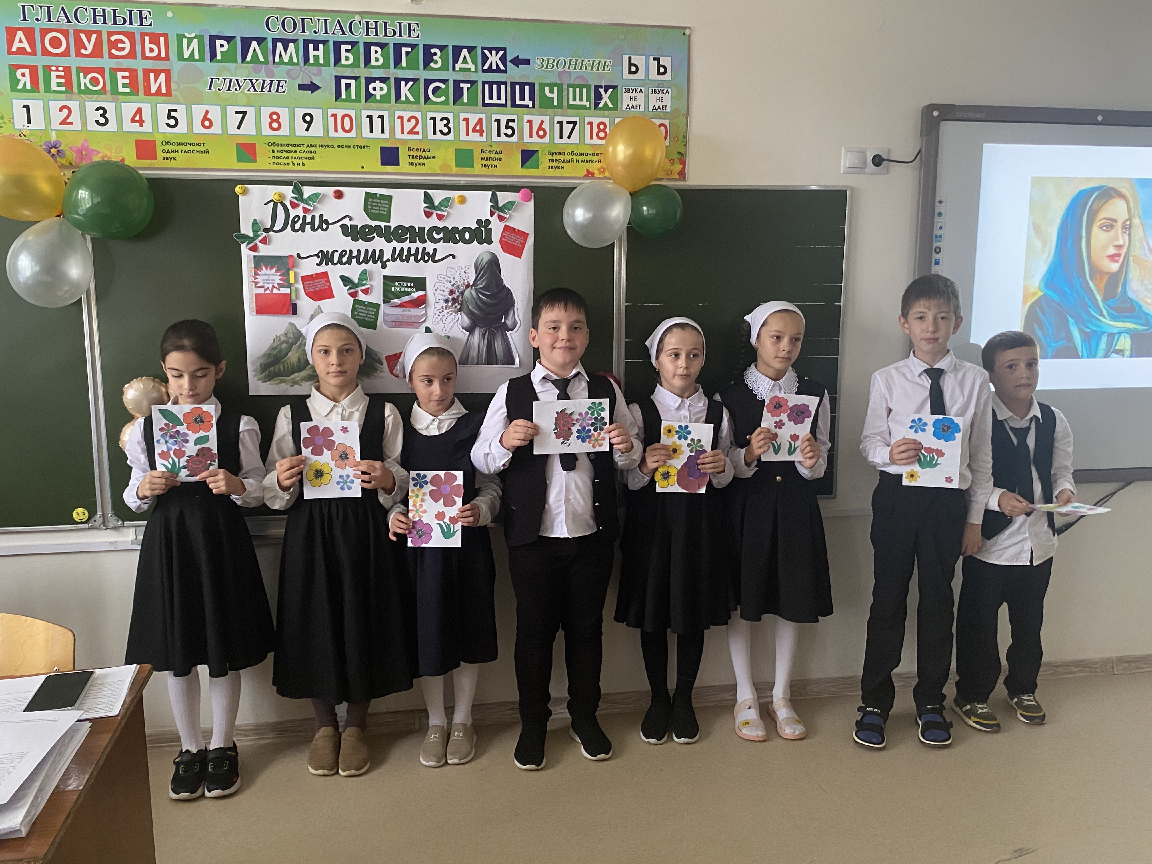 С 15.09-18.09.2025г. во всех классах проведены беседы, классные часы,посвященные ко Дню чеченской женщины. Среди учащихся 1-4 классов была проведена выставка поделок, открыток, конкурс рисунков «Нохчий йо1», приуроченных ко Дню чеченской женщины.