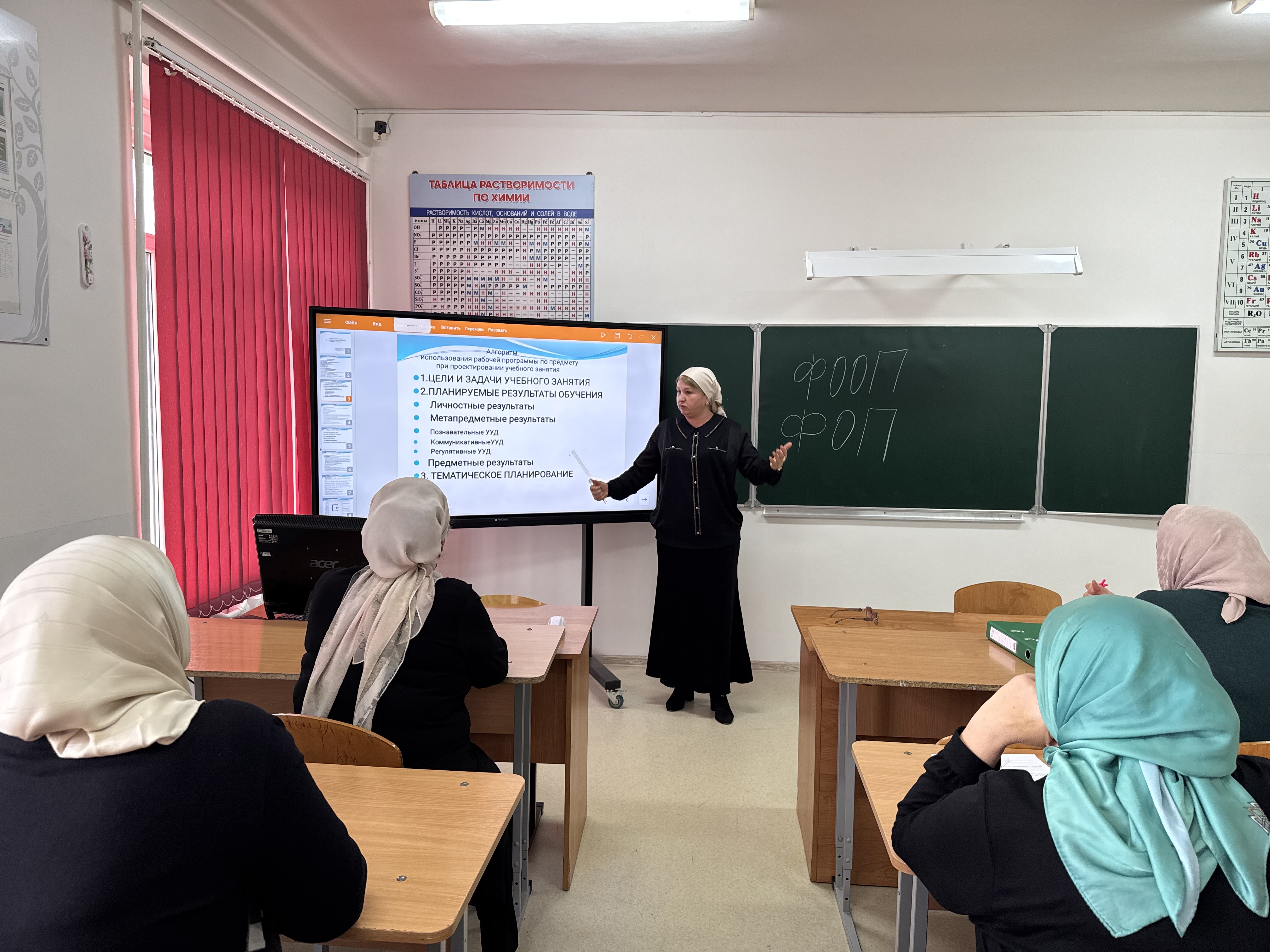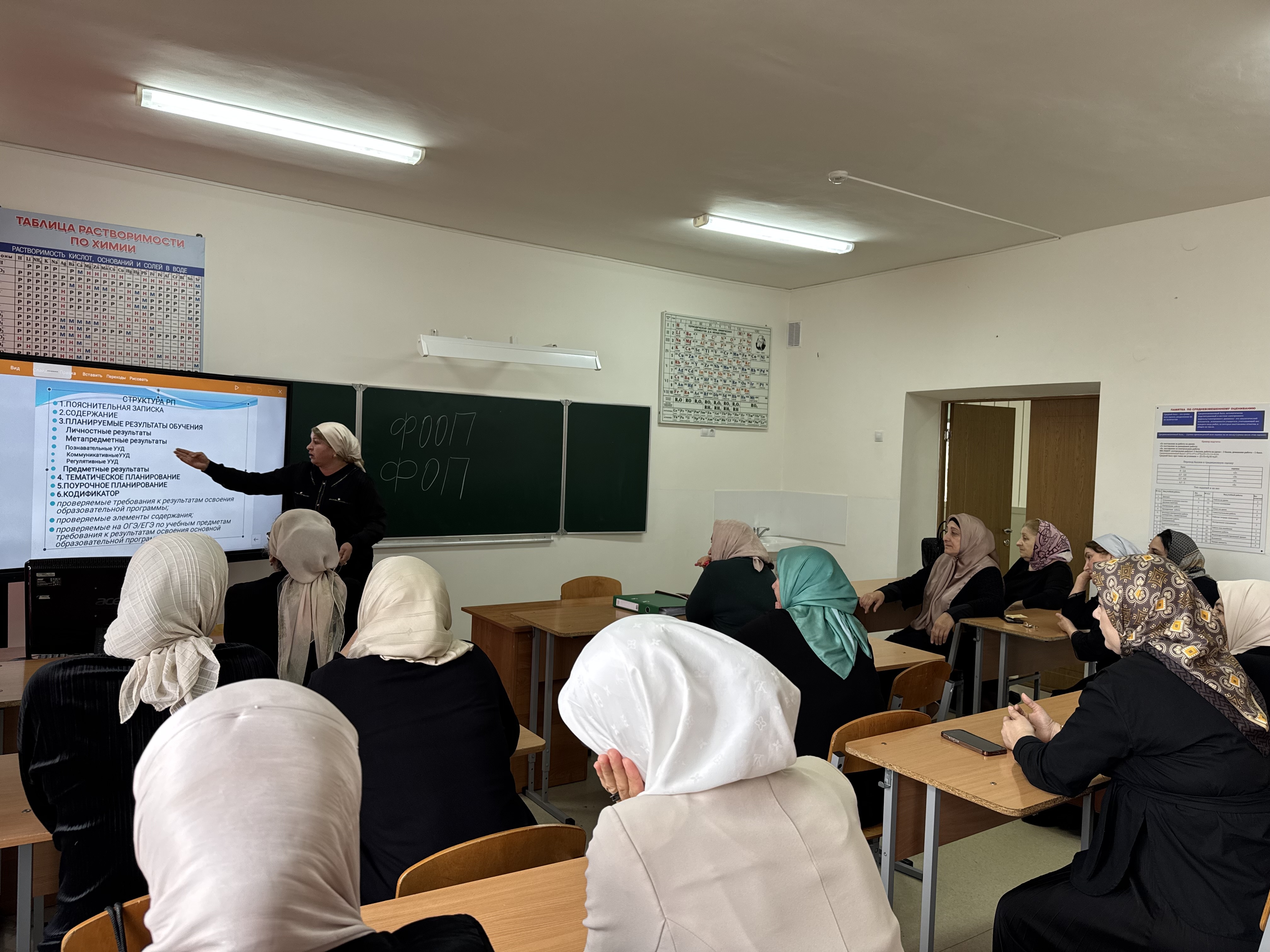04.10.2025В рамках функционирования федеральной системы научно-педагогического сопровождения педагогических работников и управленческих кадров 4 октября 2025г. на базе МБОУ «СОШ√2 с.Алхан-Кала" для учителей русского языка и литературы Грозненского муниципального района региональным методистом по русскому языку Хабибулаевой Й. Х. проведен семинар на тему "Анализ рабочих программ в соответствии с ФГОС и ФООП 2025 года".