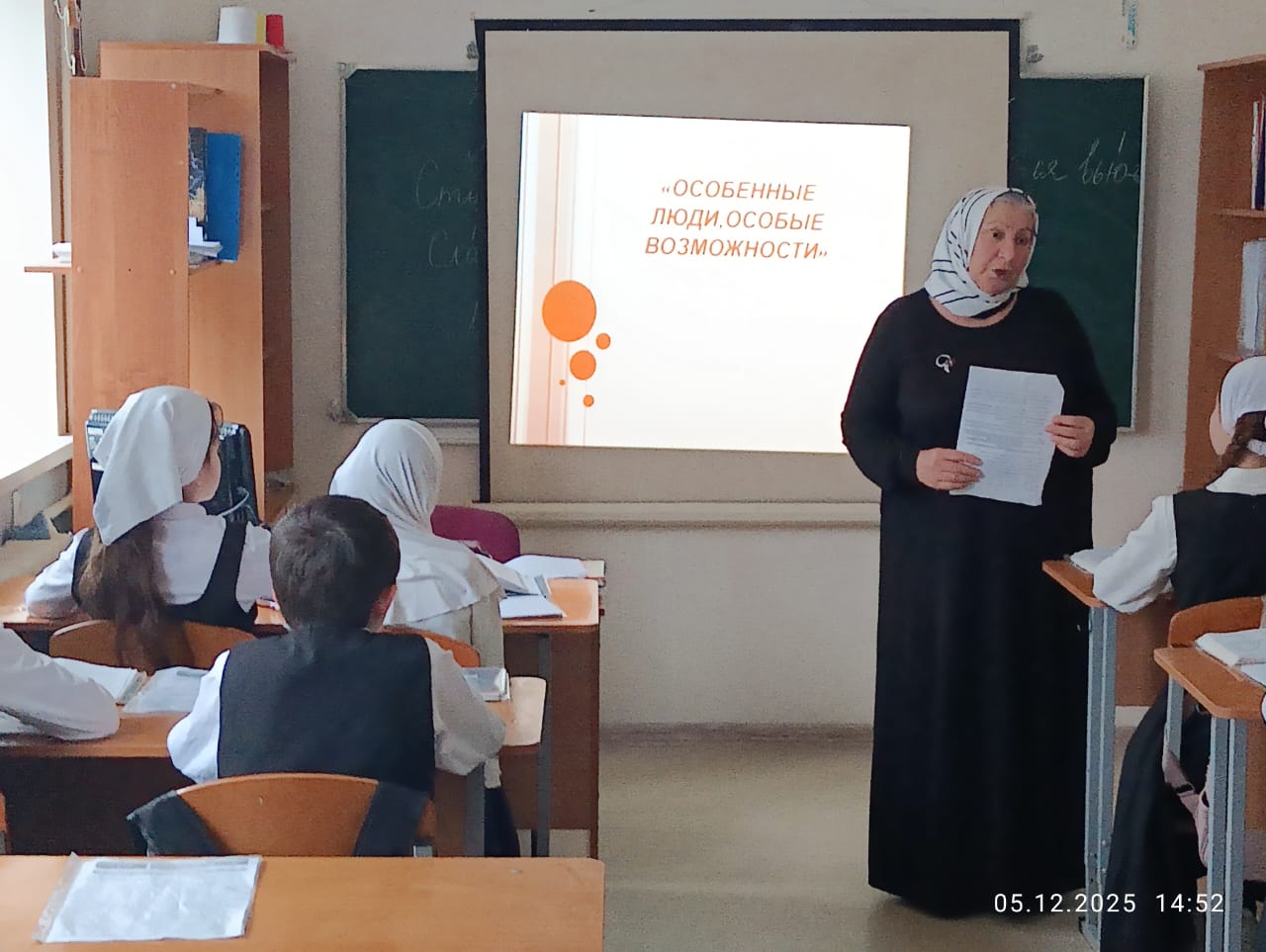 04.12.20255 декабря 2025 года в нашей школе МБОУ "СОШ № 2 с. Алхан-Кала" педагог-психолог Чибаева М.Б. провела важный и значимый классный час на тему «Особые люди особые возможности».