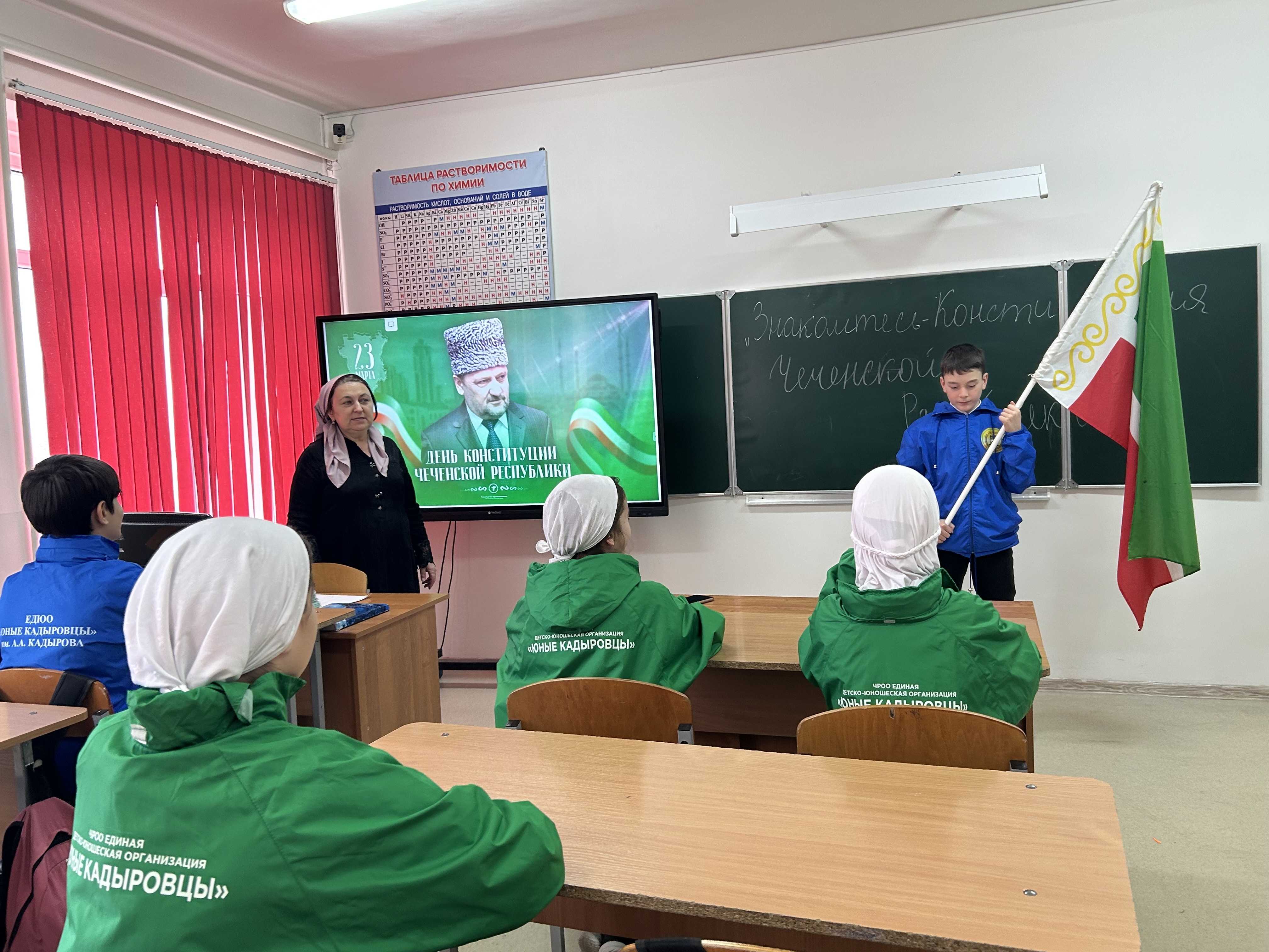 17.03. активисты ЕДЮО «Юные Кадыровы» провели акцию «Знакомитесь- Конституция Чеченской Республики!». Ребята раздавали прохожим заранее подготовленные буклеты с основными символами ЧР и предлагали жителям исполнить вместе с ними гимн Чеченской Республики.