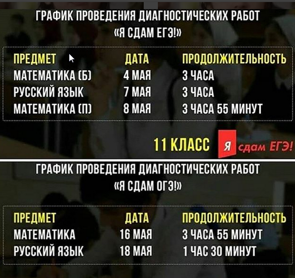 График проведения диагностических работ в рамках проекта "Я сдам ЕГЭ!".